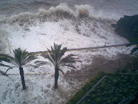 -----Estas recebi-as da Twist, que as recebeu de alguém que as pode ter recebido de outro alguém que esteve 3ª feira a assistir a esta incursão tempestuosa. Intitulou-as "Mau tempo em Santa Cruz". Mas, como ouvi num programa de rádio há dias, também dizemos que está mau tempo quando, no Verão, o sol queima? Achei interessante a intervenção, porque nunca tinha posto a questão nestes termos; para mim, bom tempo também é sinónimo de sol. É que nós, meros habitantes deste planeta, achamos que somos o elemento primordial... de vez em quando, os outros elementos fazem o favor de nos lembrar que não é bem assim.