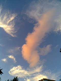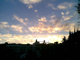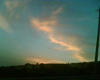 Hoje tive tempo de olhar o céu. Já era alpardinha, e as nuvens eram as sereias da Ilha dos Amores, fugindo aos fatigados raios de sol. O resultado está aí!